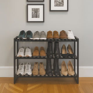 Neo Black 3-Tier Bamboo Shoe Rack Stand Natural Wooden Shoe Storage Shelf for Hallway Bedroom Bathroom