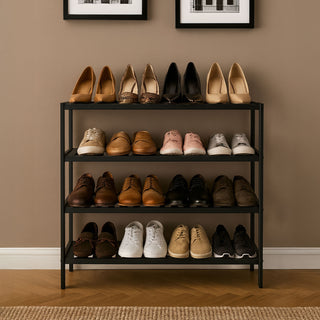 Neo Black 4-Tier Bamboo Shoe Rack Wooden Shoe Storage Organiser Shelf for Hallway, Entrance Living Room