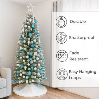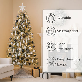 The ornaments are crafted from durable, shatterproof plastic, offering the shine of glass without the risk of breakage, making them safe for families with children and pets. Every piece comes pre-threaded, allowing for quick and easy decorating right out of the box.