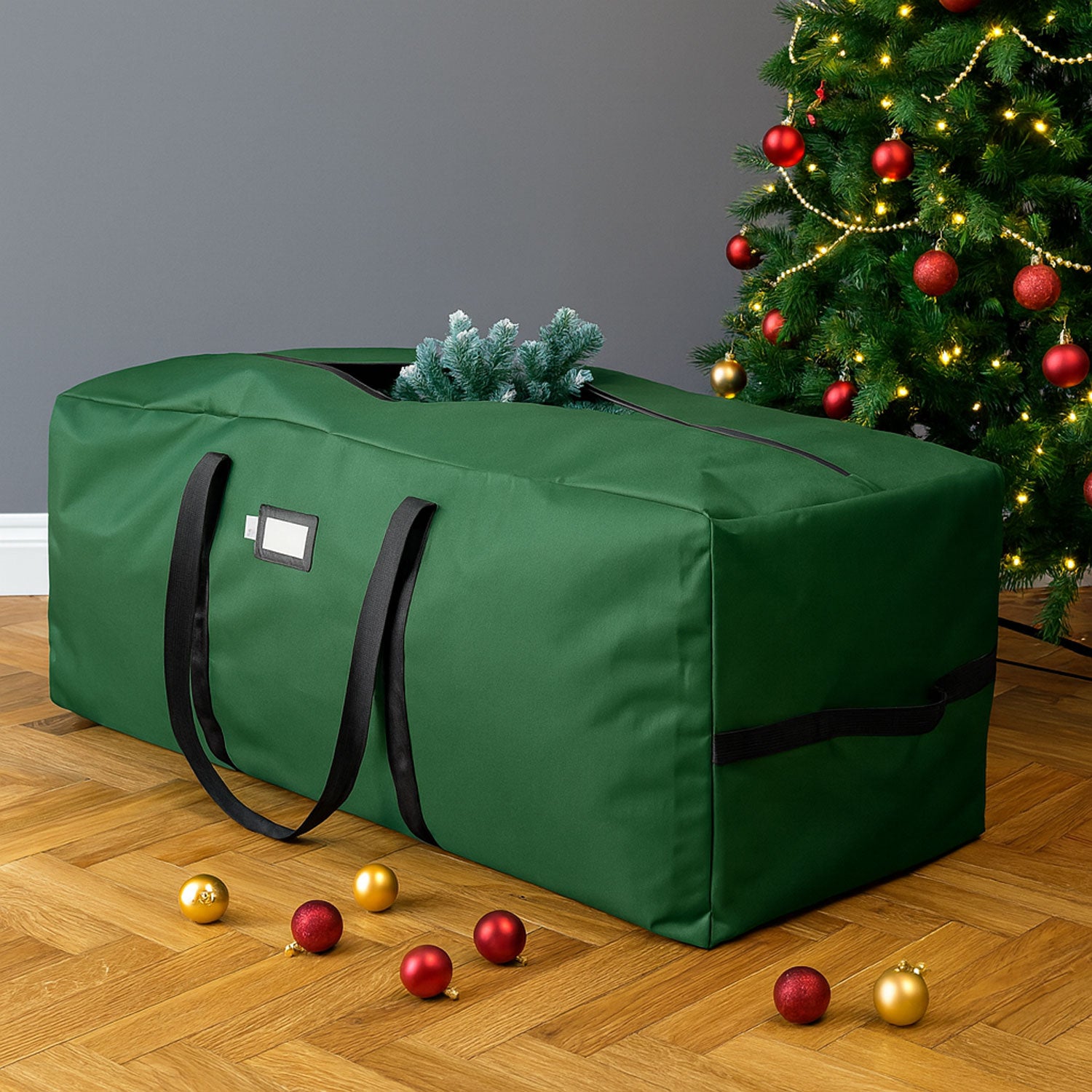 Keep your festive décor protected and organized year after year with this Neo extra large Christmas Tree Storage Bag, designed to fit artificial trees up to 9 ft tall. Crafted from durable 600D Oxford Cloth, this heavy-duty storage solution offers exceptional tear resistance and moisture protection, keeping your holiday items safe in basements, attics, or garages. The spacious 165 x 50 x 64 cm interior provides ample room for full, wide trees as well as garlands, wreaths, and bulky decorations. A smooth, full-length zipper closure ensures easy packing and secure sealing, while reinforced carry handles make transportation effortless. Featuring a sleek rectangular shape for efficient stacking and a built-in label window for quick identification, this tree storage bag is the perfect way to keep your seasonal décor clean, organized, and ready for next year.
