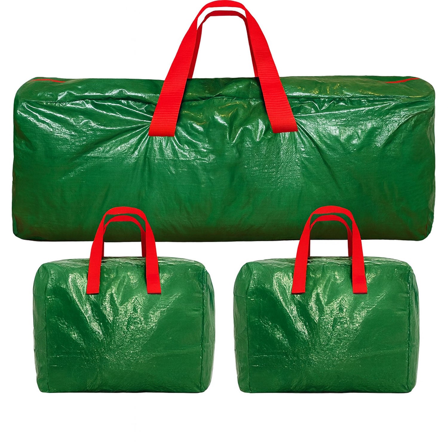 This set includes one extra-large storage bag perfect for most artificial Christmas trees (6–9ft), along with two medium-sized bags ideal for ornaments, lights, wreaths, garlands, and festive accessories.