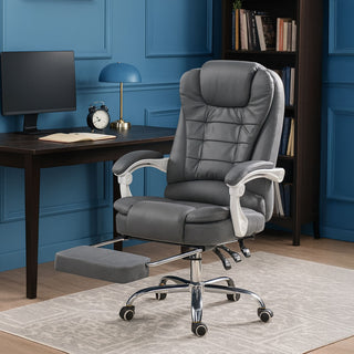 Neo Gaming Chair Grey & Black PU Leather with Footrest