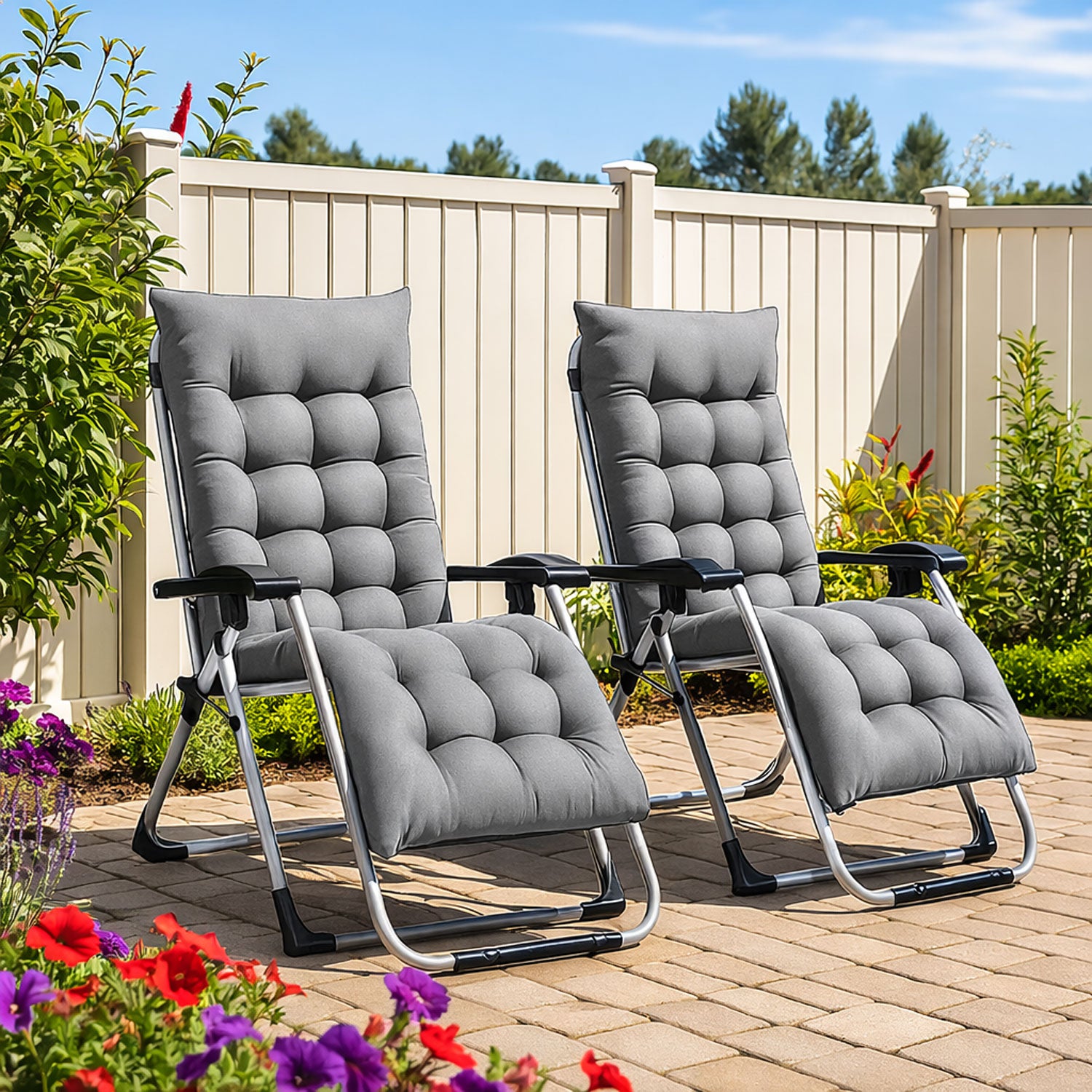 Perfect for outdoor patios, decks, gardens, balconies, or indoor spaces, these reclining lounge chairs feature a neutral grey design that seamlessly complements any décor style. Whether you're looking for outdoor reclining chairs, zero gravity loungers, or padded chaise lounges for home and garden, this reclining chaise delivers comfort and elegance.