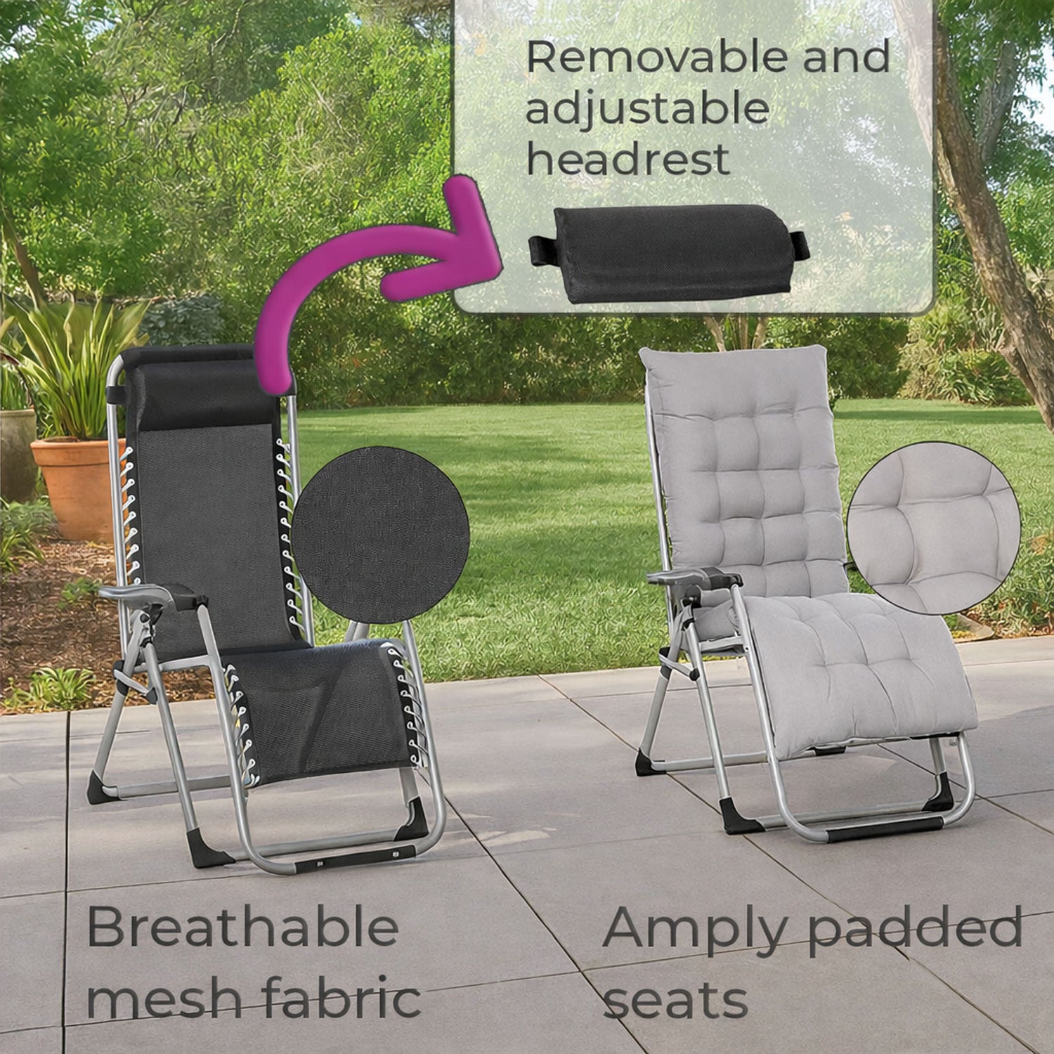 Neo Grey Zero Gravity Sun Lounger With Padded Cushions Set of Two