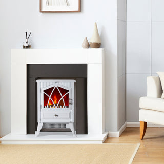 Neo Electric Heater White with Realistic Flame & Log Store 1000W / 2000W
