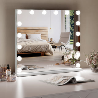 Neo Hollywood Vanity Touch Wall Mounted and Freestanding Mirror with 16 LED Bulbs
