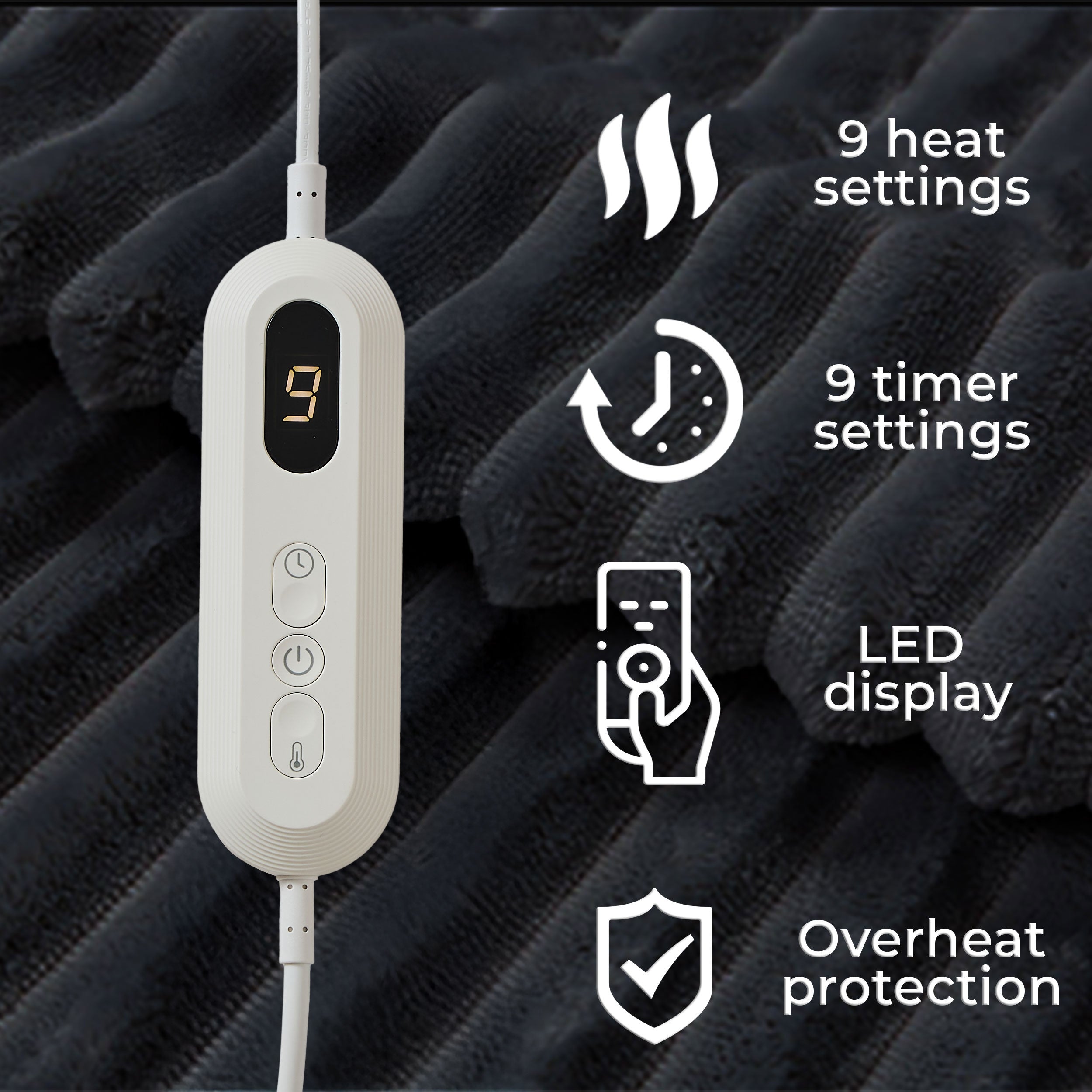 Neo Black Electric Blanket Heated Fleece Overblanket Throw