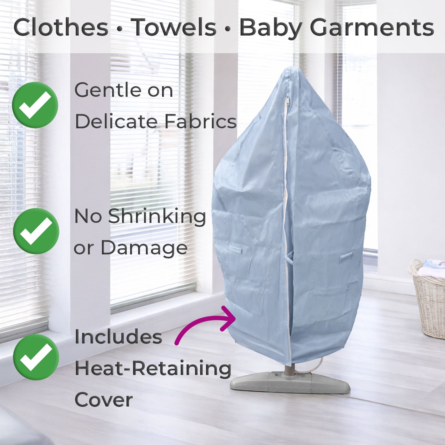 • Comes with a heat-retaining cover to speed up drying, reduce heat loss, and protect laundry from dust, perfect for indoor use.