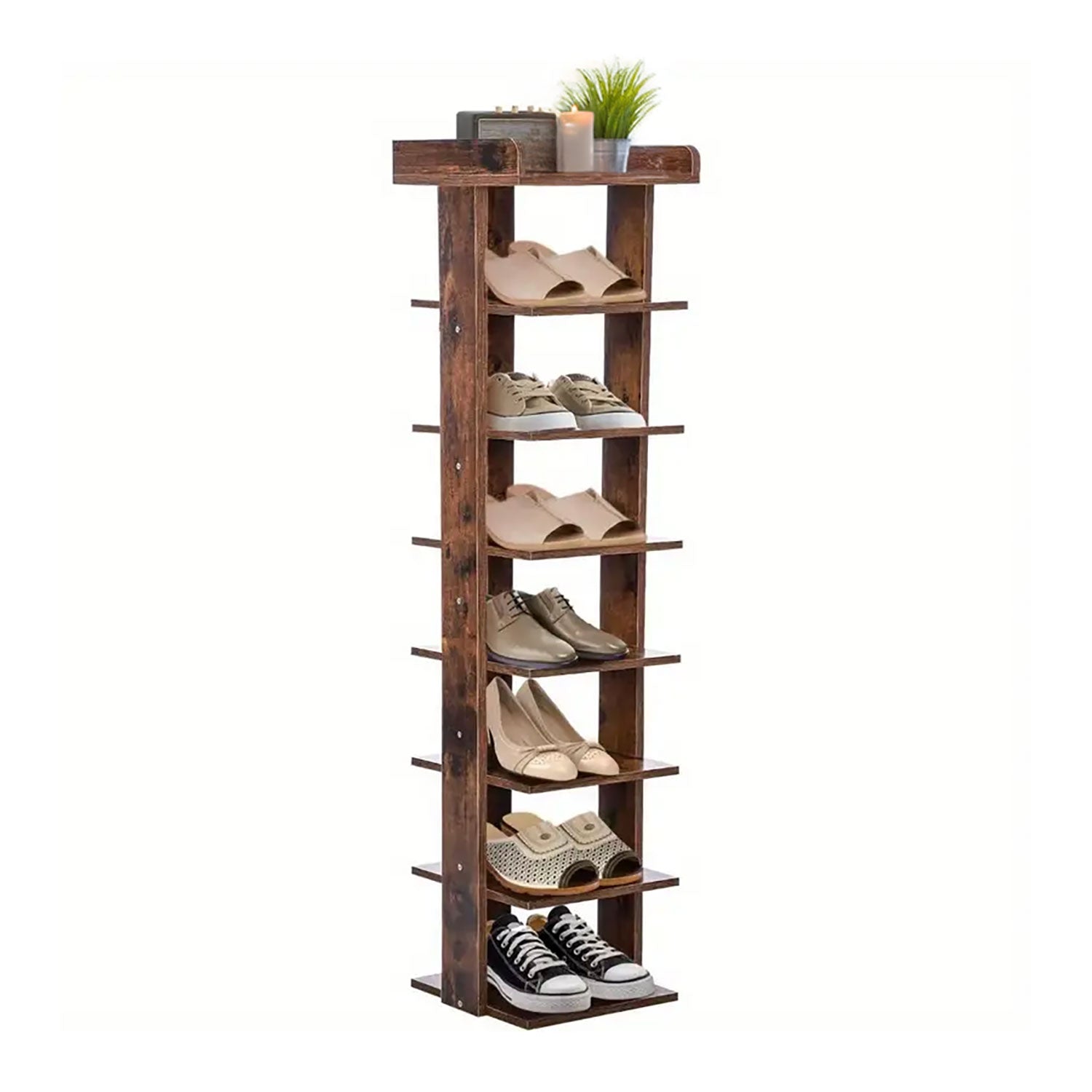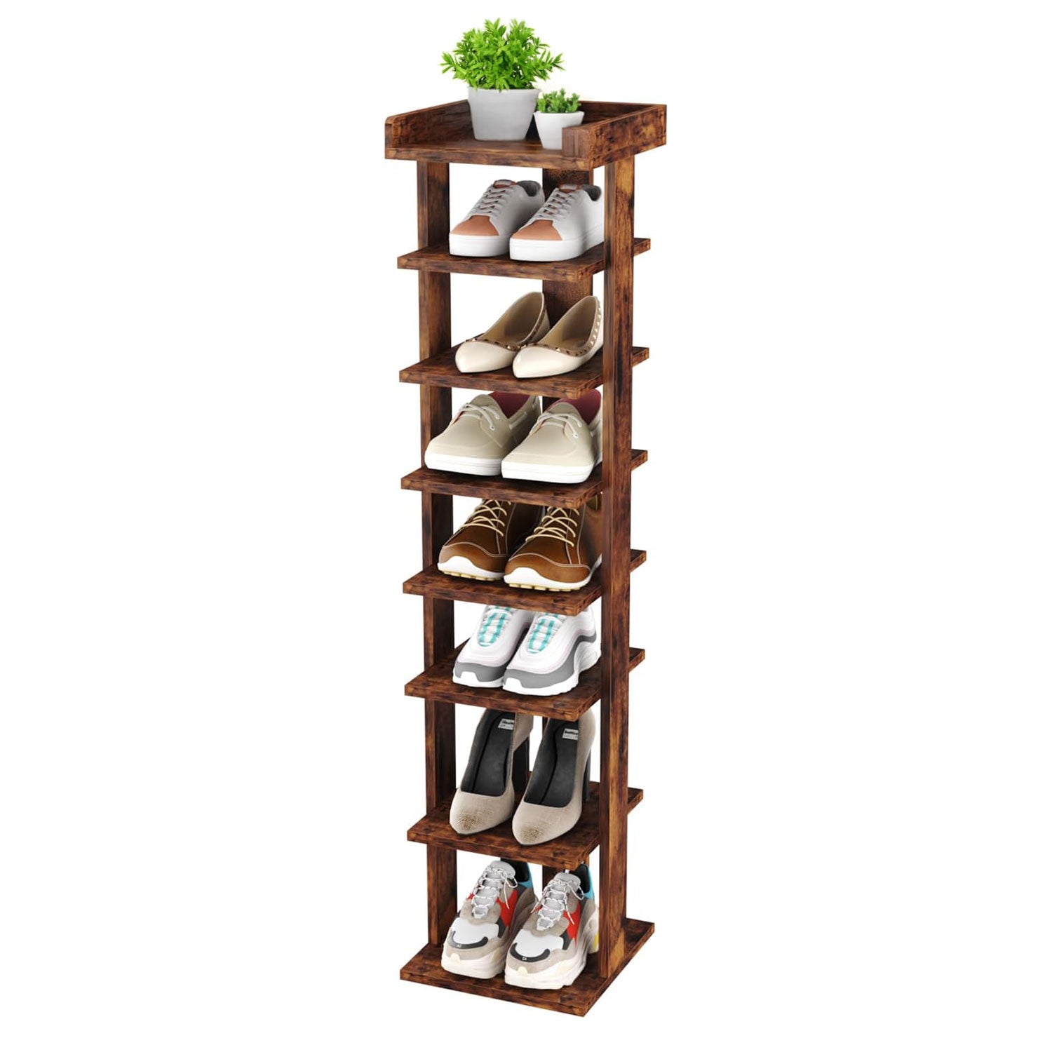 Neo Walnut 8 Tier Wooden Shoe Rack Slim