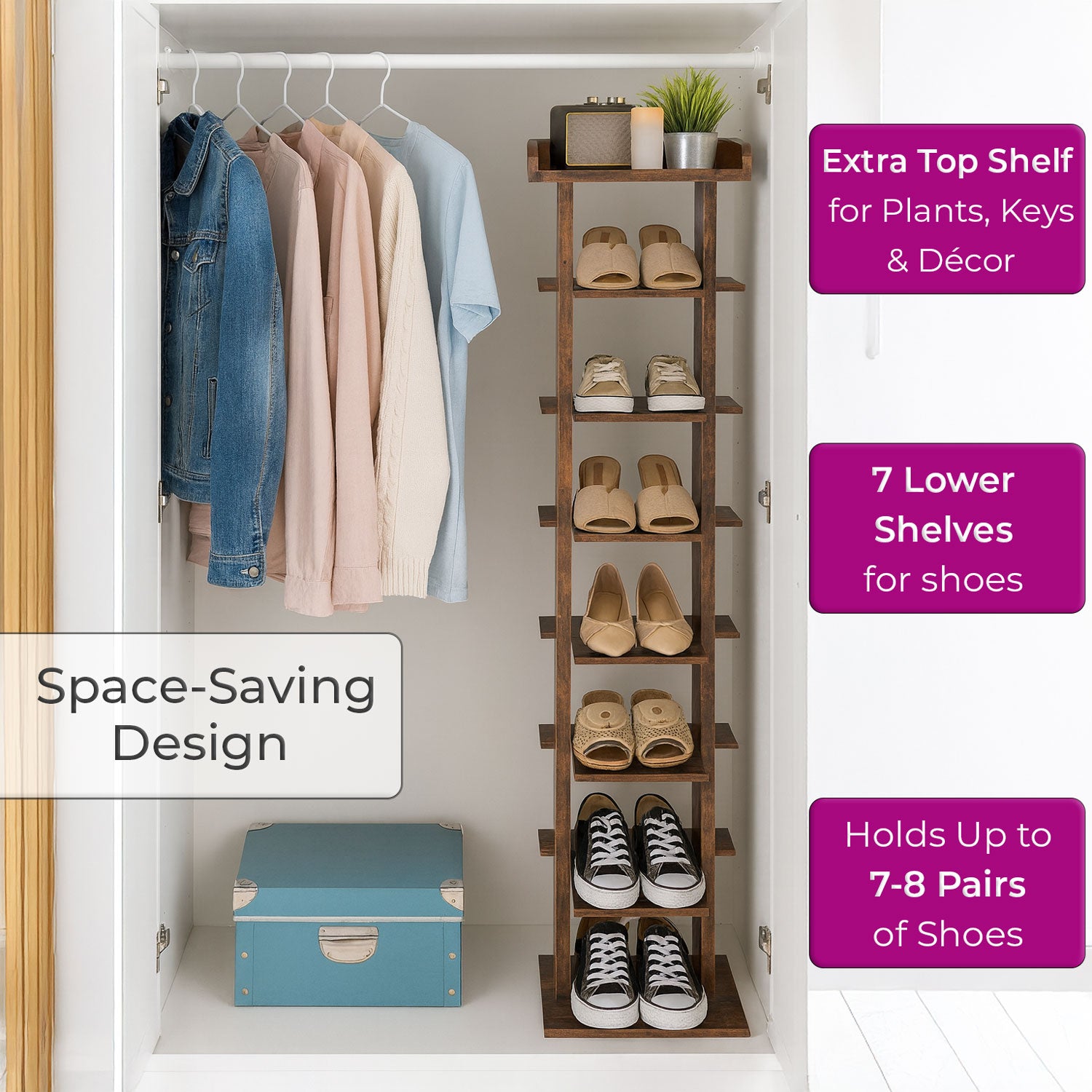 • Space-Saving Design – Vertical structure with multiple shelves keeps shoes neatly arranged while saving floor space.