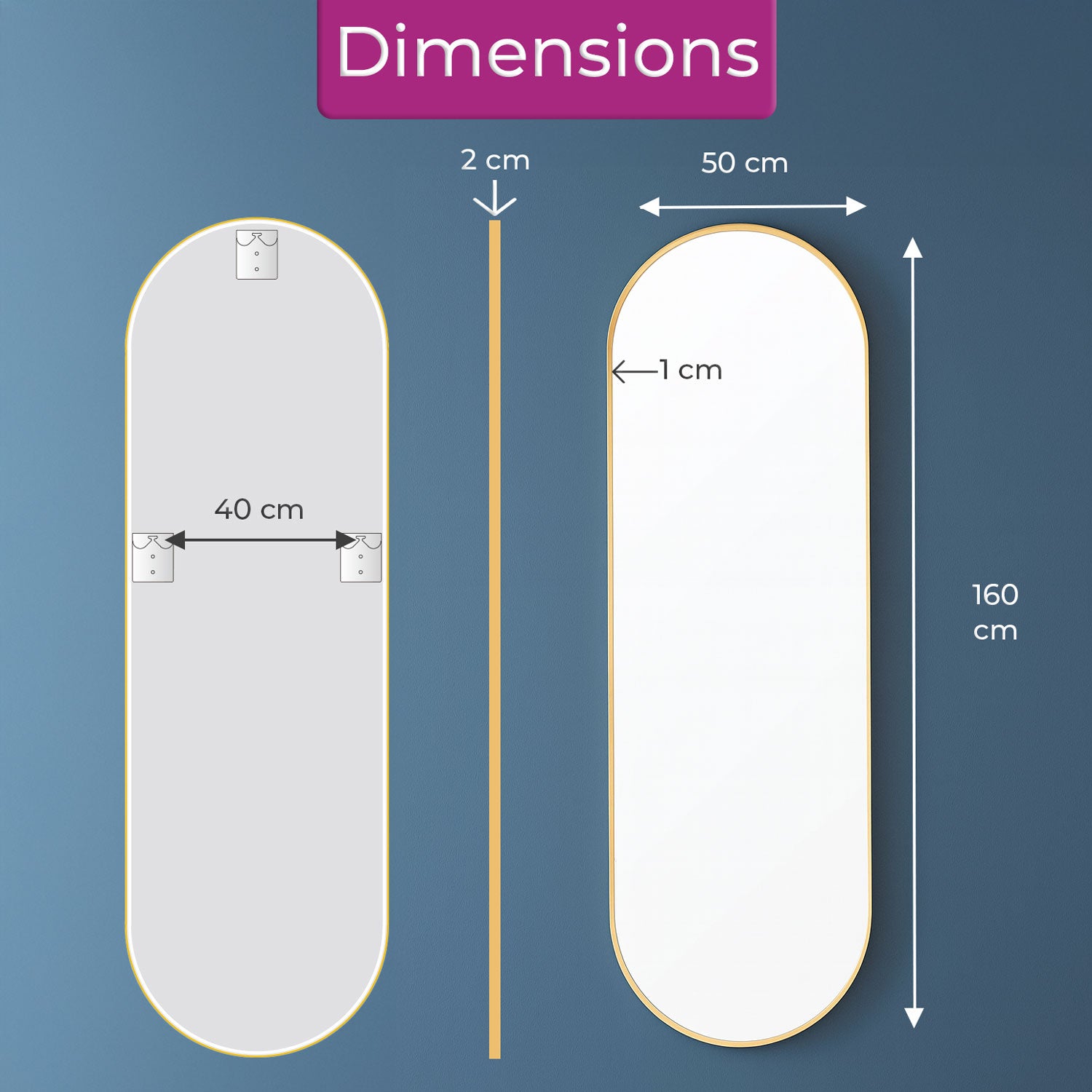 Full-length size: 50 x 160 x 2 cm, perfect for bedrooms, dressing areas, entryways, or boutique stores. Large enough to provide a complete head-to-toe reflection.
