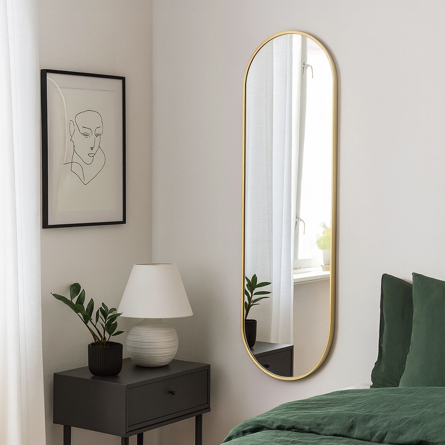 Elevate your home décor with this elegant Neo Gold Metal Framed Wall Mirror, designed to bring style, brightness, and functionality to any living space. Crafted with a durable metal frame and a copper-free high-clarity mirror, this full-length wall-mounted design blends modern minimalism with premium craftsmanship.