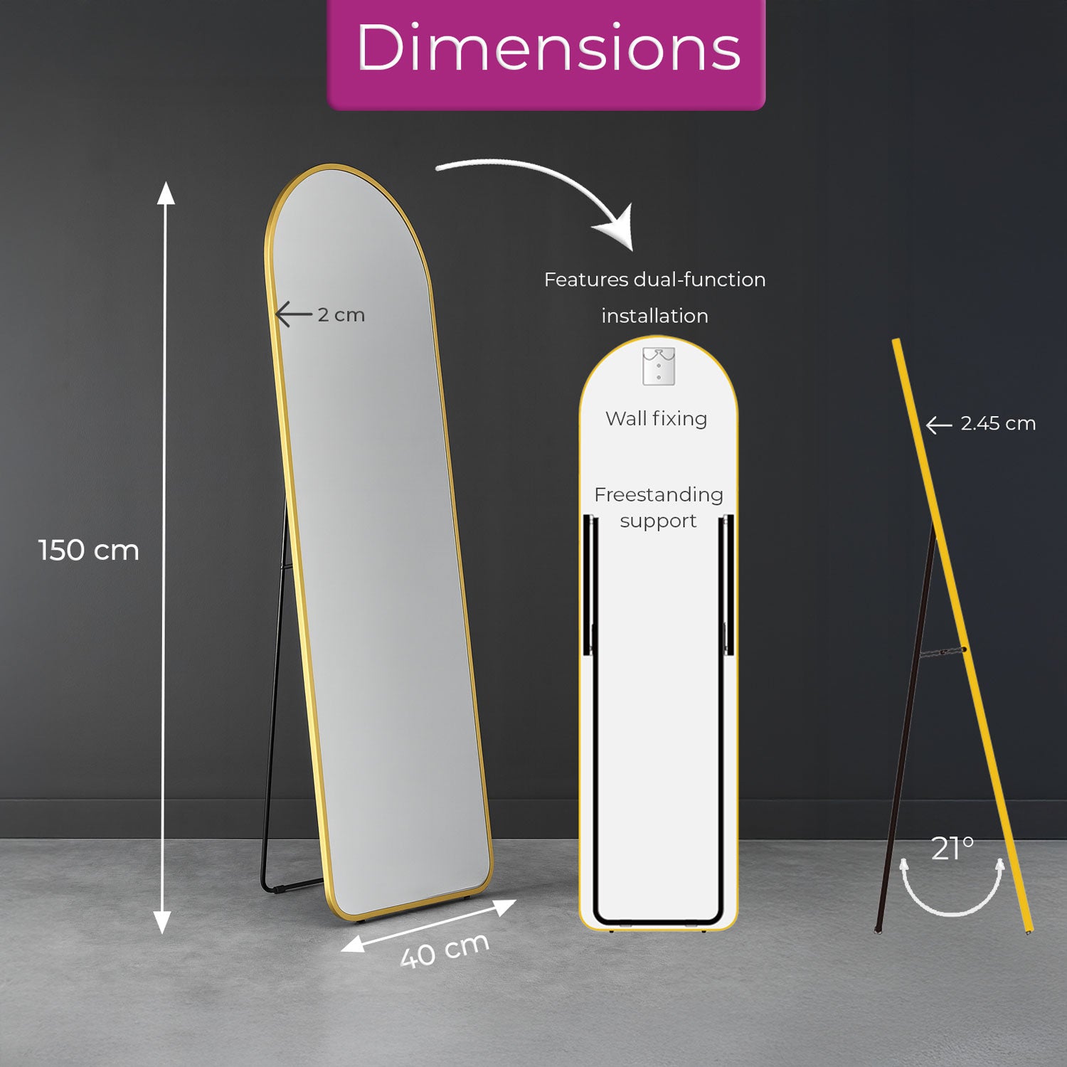 2-in-1 Design: Wall Mounted or Free-Standing - Use it as a leaning floor mirror, stand it with the built-in support, or mount it vertically on the wall to save space.