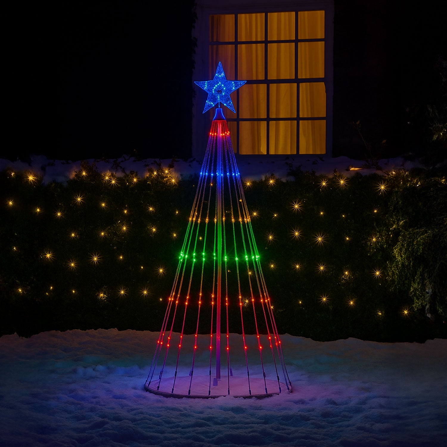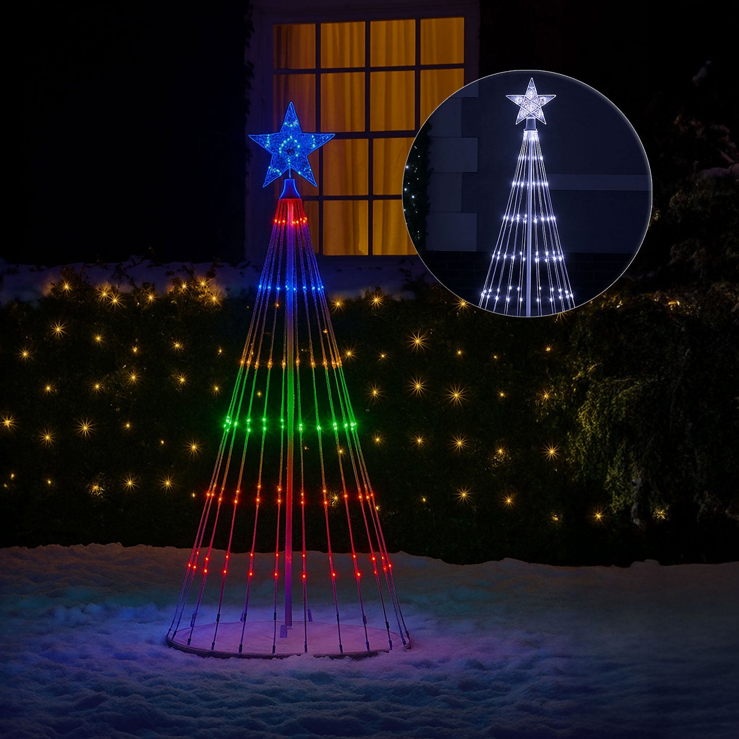 Designed in a stylish waterfall effect, the LEDs cascade beautifully from a glowing star topper, forming an elegant cone-shaped tree that radiates Christmas cheer. With multiple lighting functions, you can easily switch between gentle twinkles, steady glows, or dynamic displays to suit your festive mood.