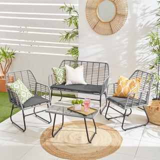 Neo Black 4 Piece Rattan Outdoor Furniture Garden Sofa Set