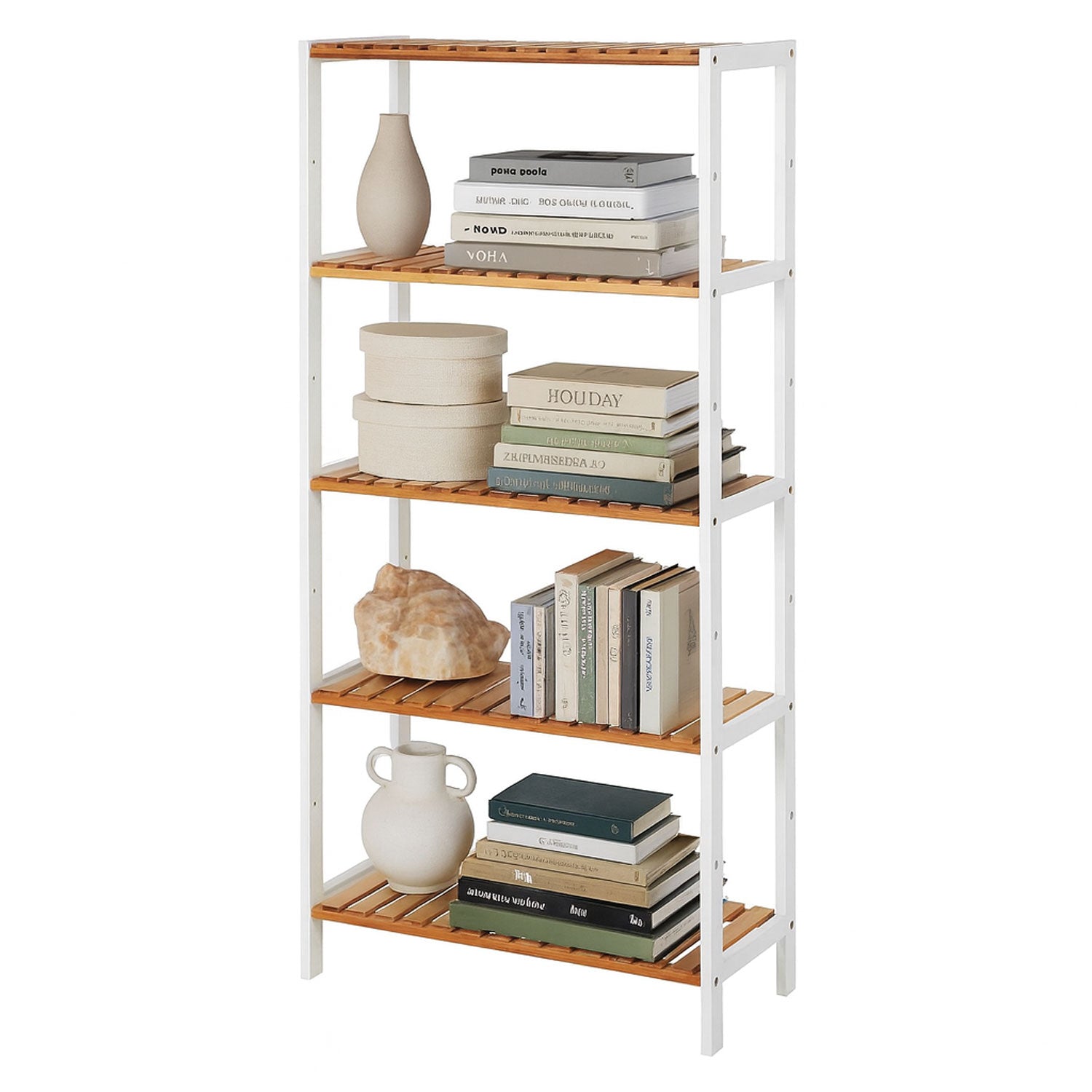 Neo Natural / White 5 Tier Bamboo Storage Shelf Shelves Rack Adjustable Multi-Purpose Rack Shoes Plants Bathroom Kitchen Hallway Room Organiser Unit