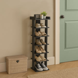 Neo Black 7 Tier Wooden Shoe Rack Slim