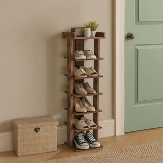 Neo Walnut 7 Tier Wooden Shoe Rack Slim