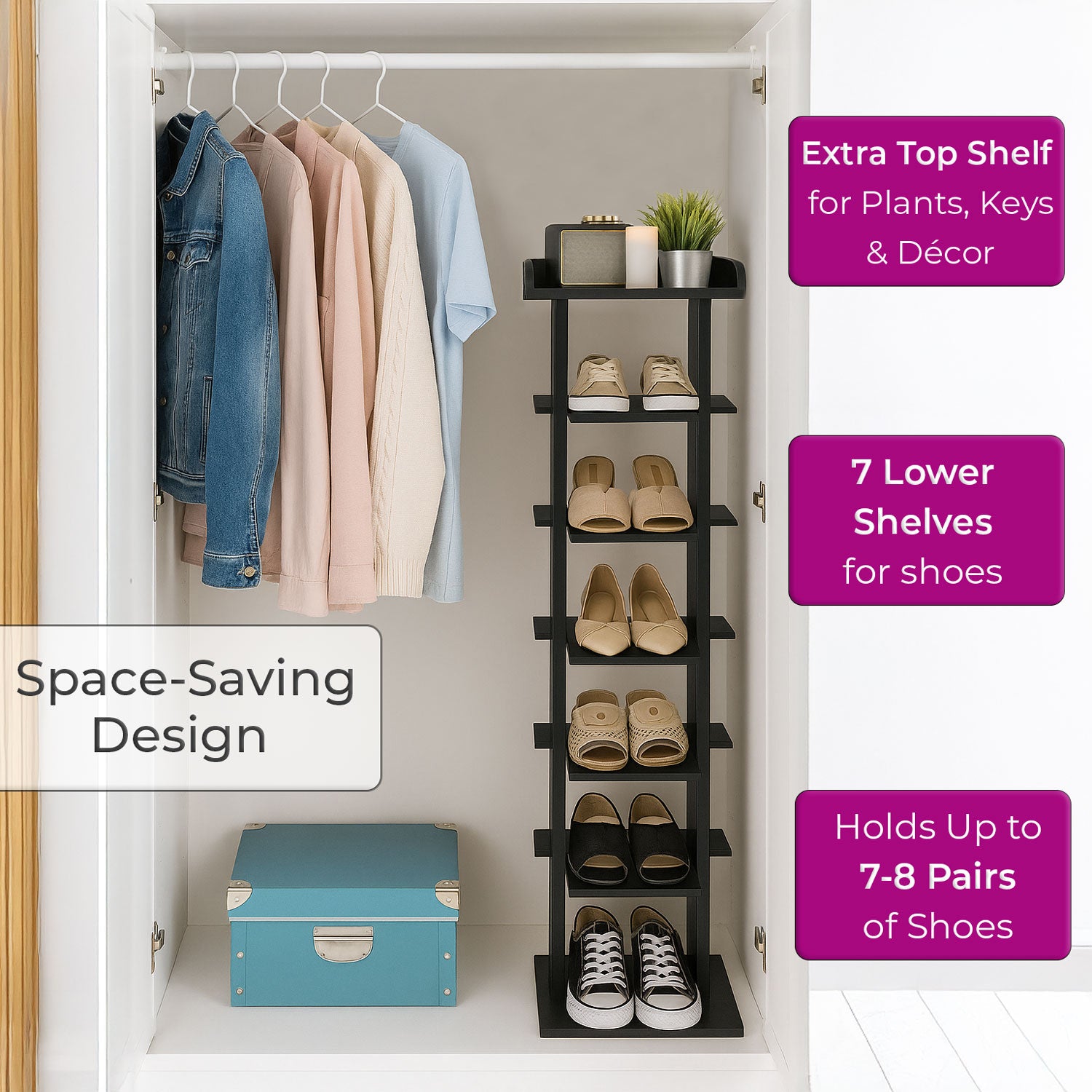 Keep your home neat and organised with this Neo multi-tier wooden shoe rack, designed to fit seamlessly into your hallway, bedroom, living room, or office. Made from high-quality eco-friendly composite wood, this shoe cabinet is durable, lightweight, and built to last. Its slim and modern design makes it perfect for small spaces, providing maximum storage without taking up much room.
