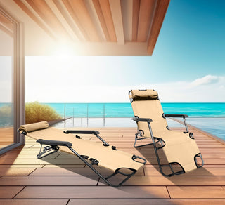 Neo Pair of Cream Outdoor Garden Folding Sun Loungers