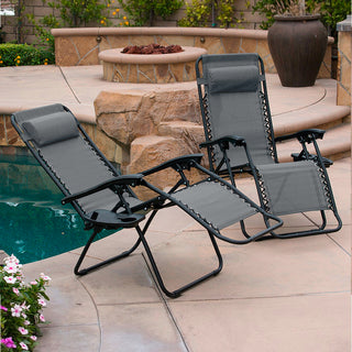 Set of Two Neo Grey Zero Gravity Recliner Garden Sun Loungers